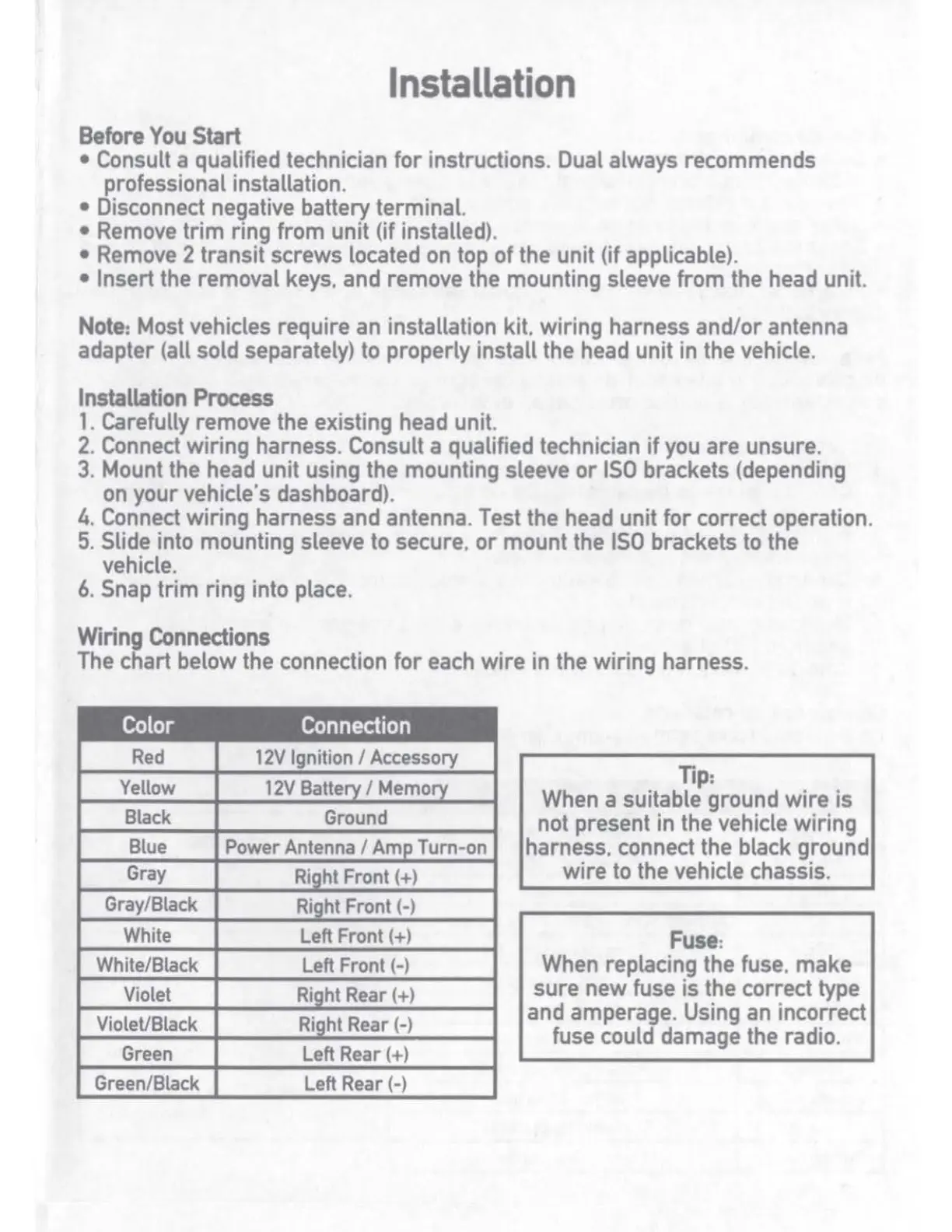 adapter (all sold separately) to properly install the head unit in the vehicle.