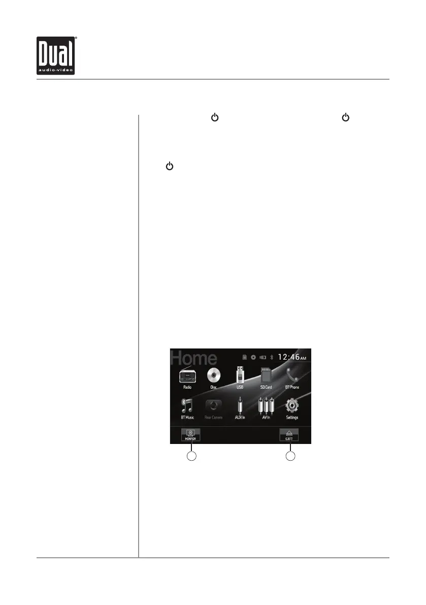 to turn the unit on. Press and hold to turn