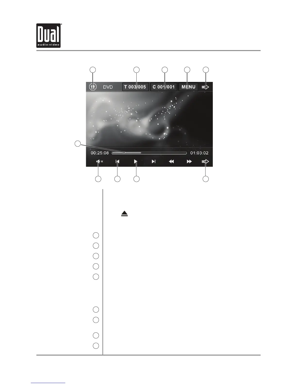 Displays elapsed time and time remaining on the DVD.