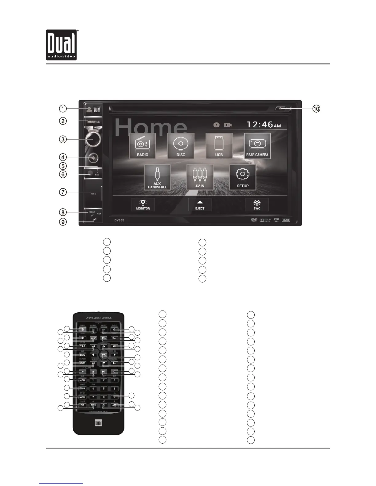 Dual DV605 - Control Locations