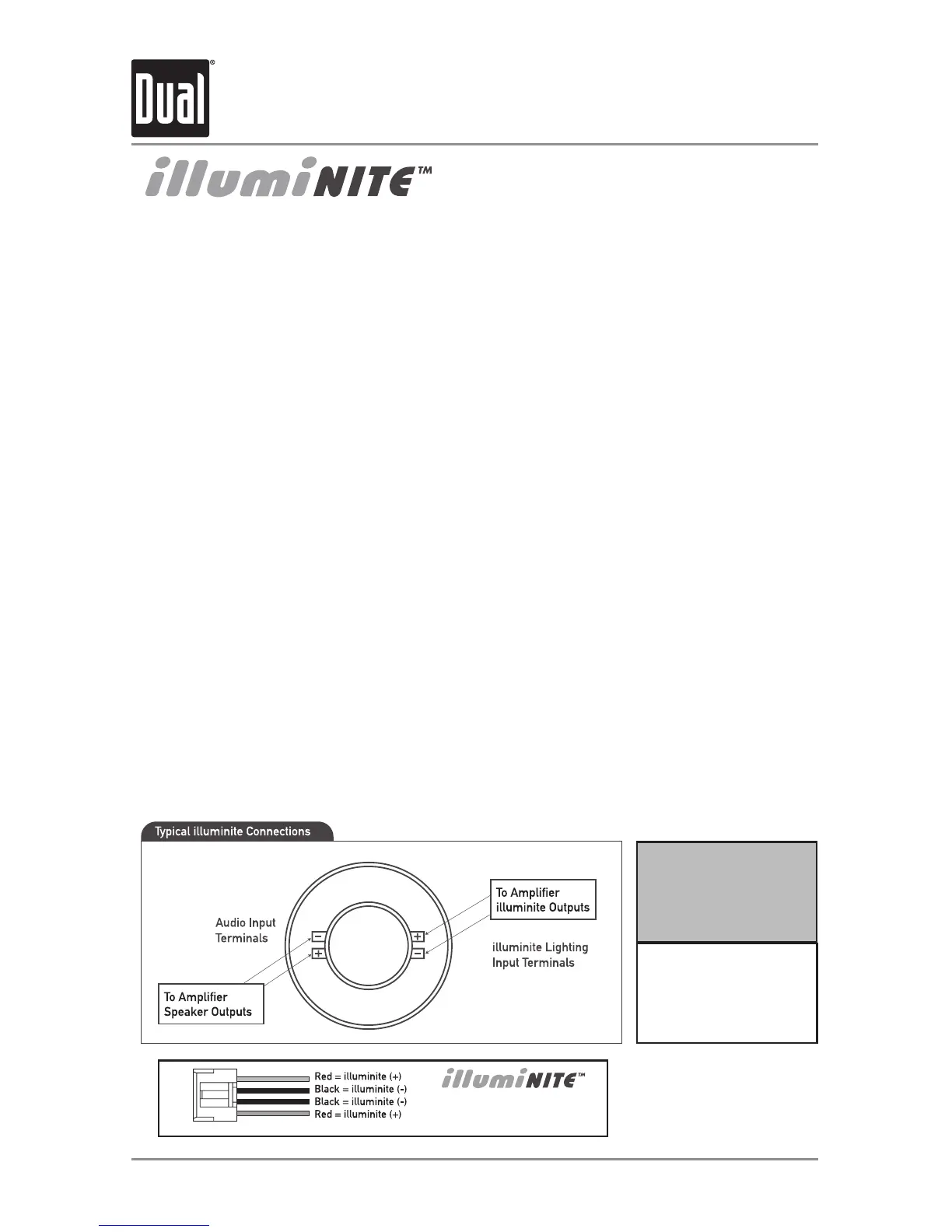 1. Do not connect the amplifier speaker outputs or any audio source to the illuminite