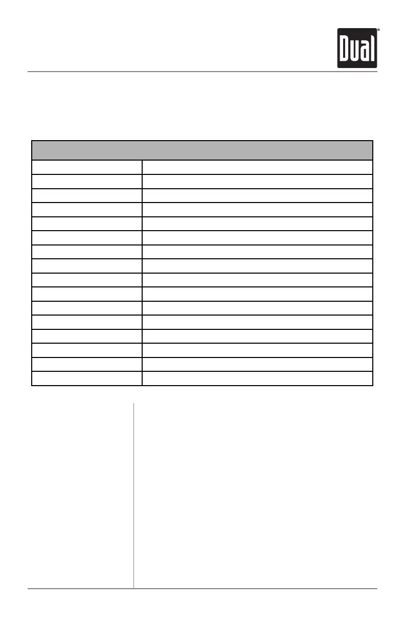 MP3/WMA Button Function Table
