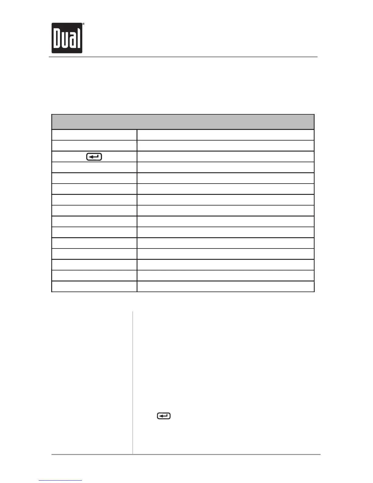 MP3/WMA Button Function Table