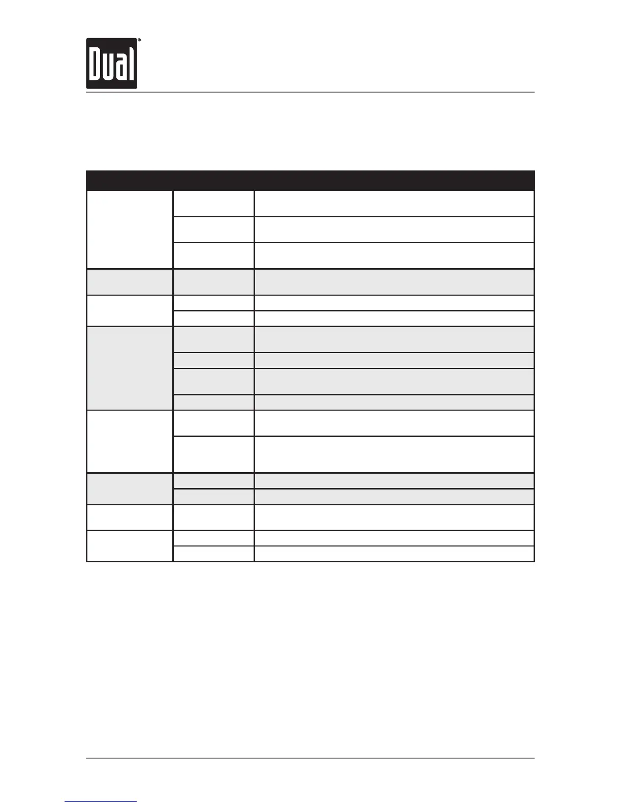 Menu Function Options Action
