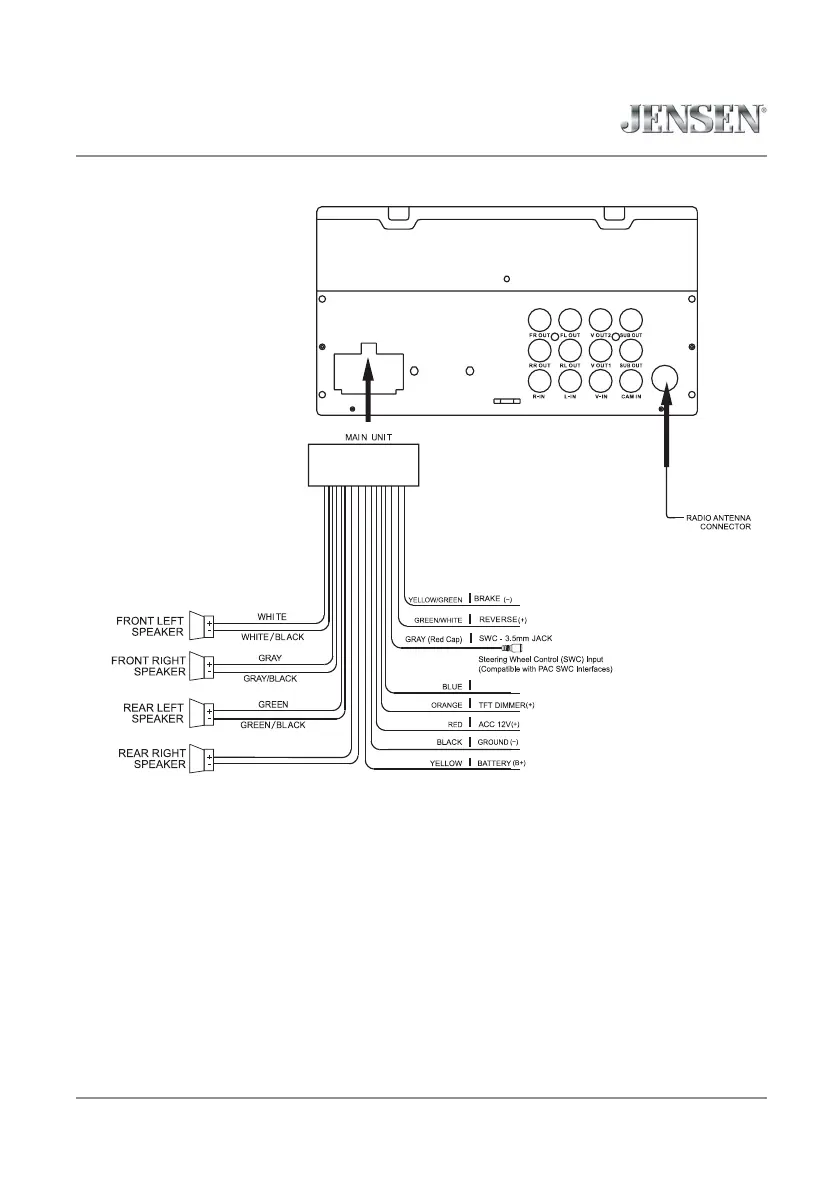 A rear view camera (not included) can be used with the Camera input.