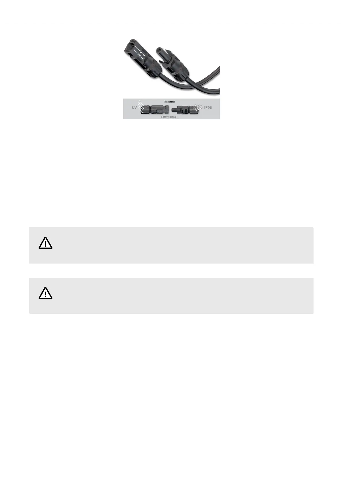connectors must be used. These cables must be UV and wear resistant. Avoid leaving cables exposed to the