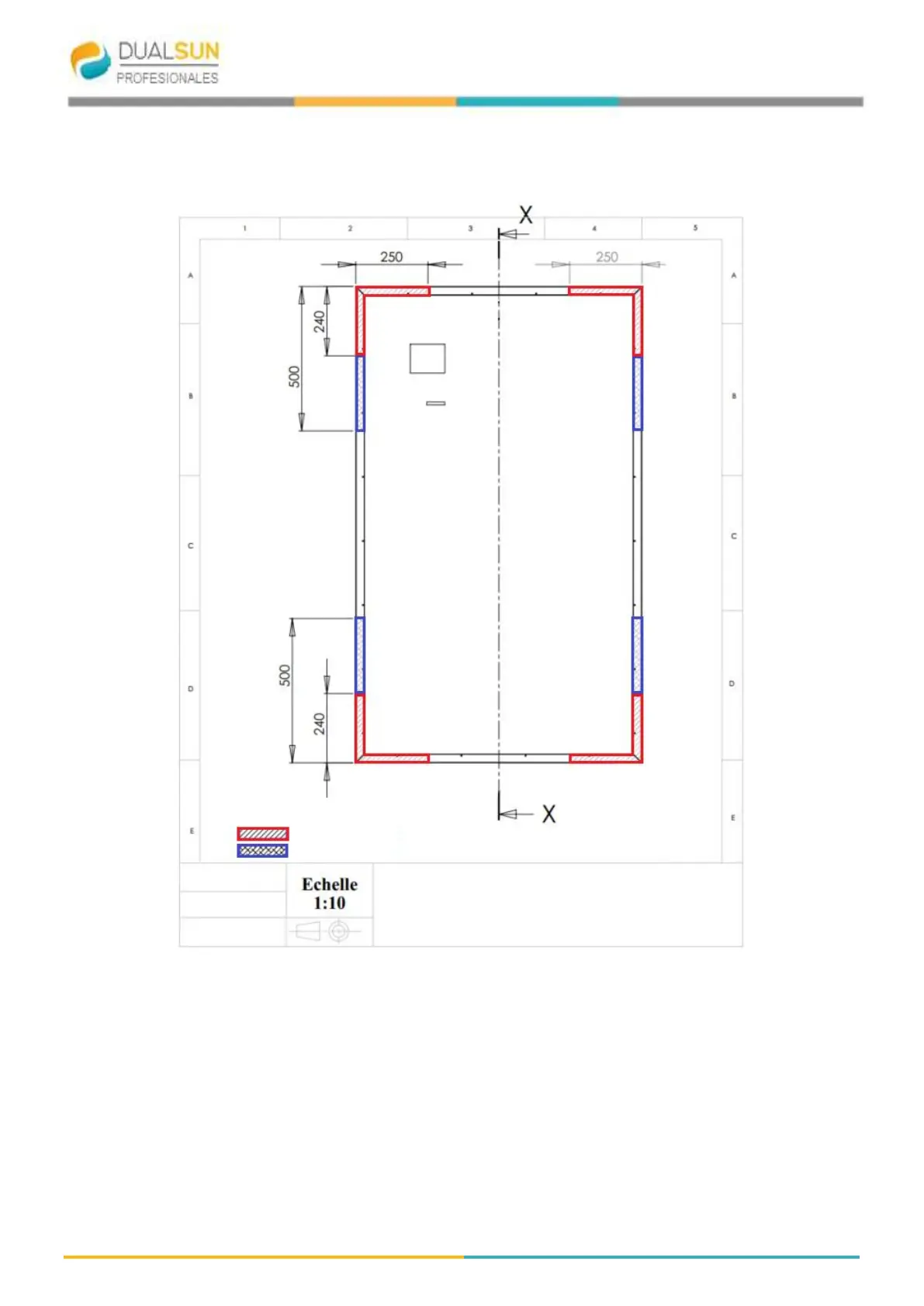 Gráfico 2: Posiciones posibles de los estribos y grapas de sujeción del panel Dualsun Flash