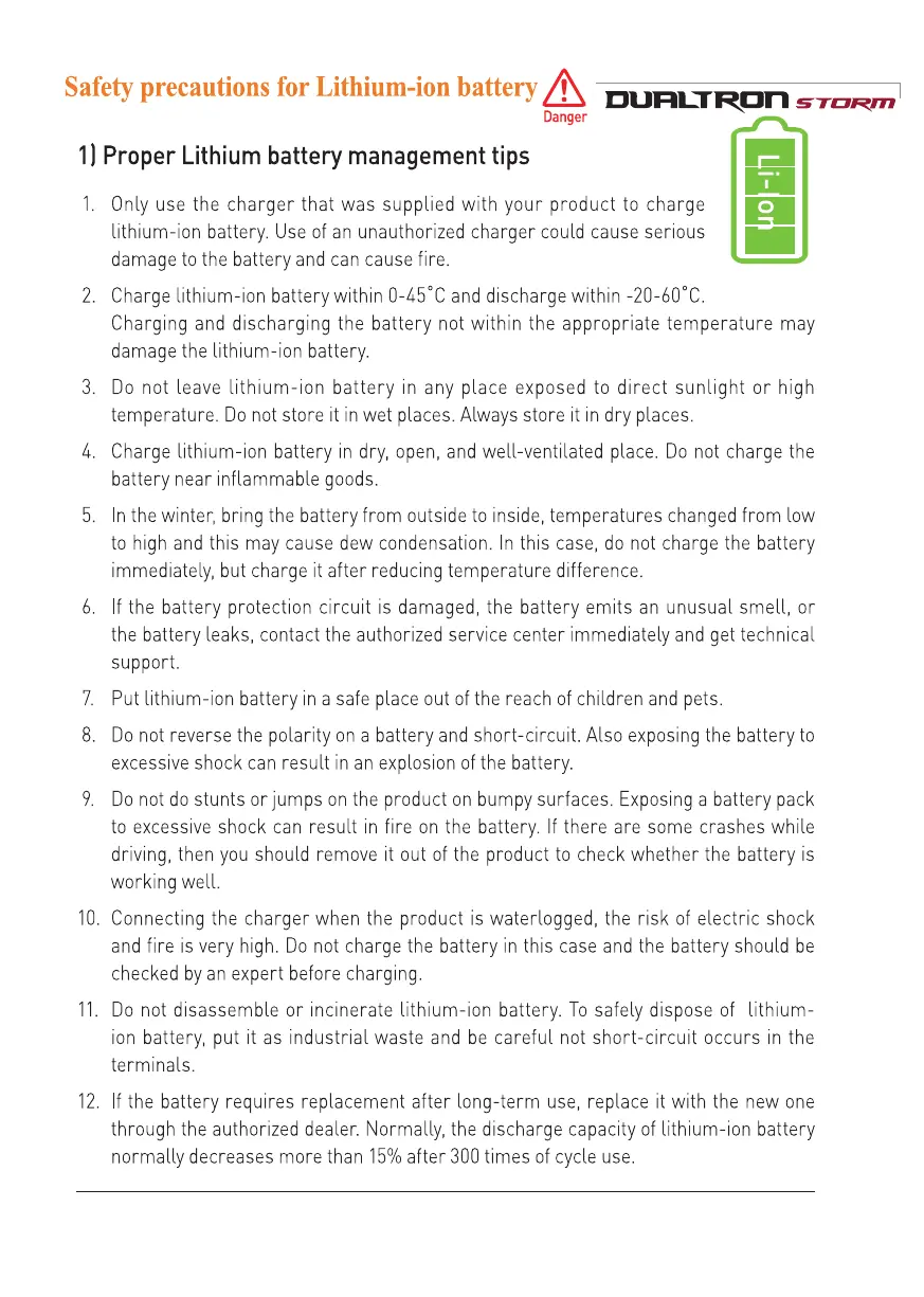 Dualtron STORM - Lithium-ion Battery Safety; Proper Battery Management
