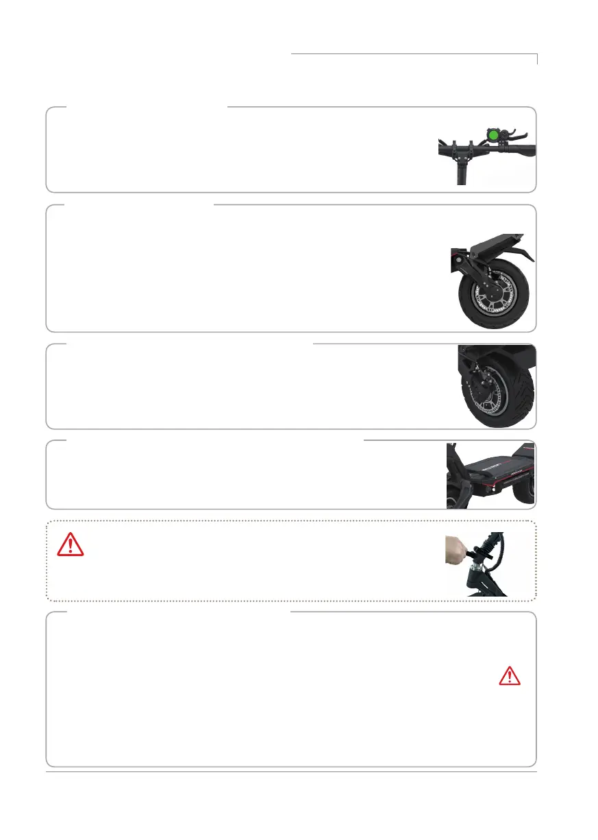 • Check the front and rear tires for wear and punctures and check the proper air pressure