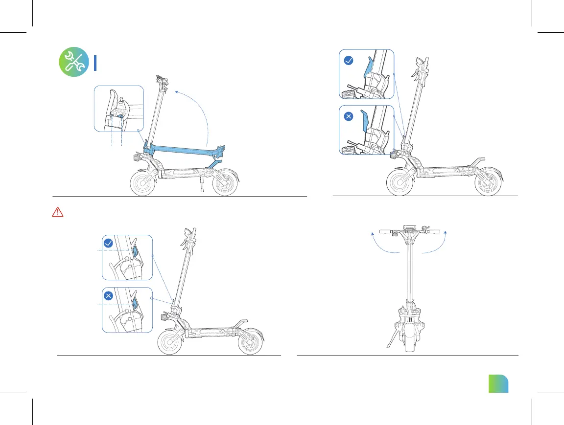 (Carefully,if the folding latch gets into the button incorrectly,the steering tube will fall
