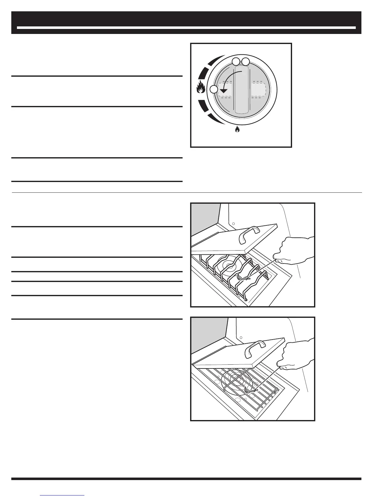 a fl ame. If burner does not light on fi rst try, push control knob in and turn to OFF.