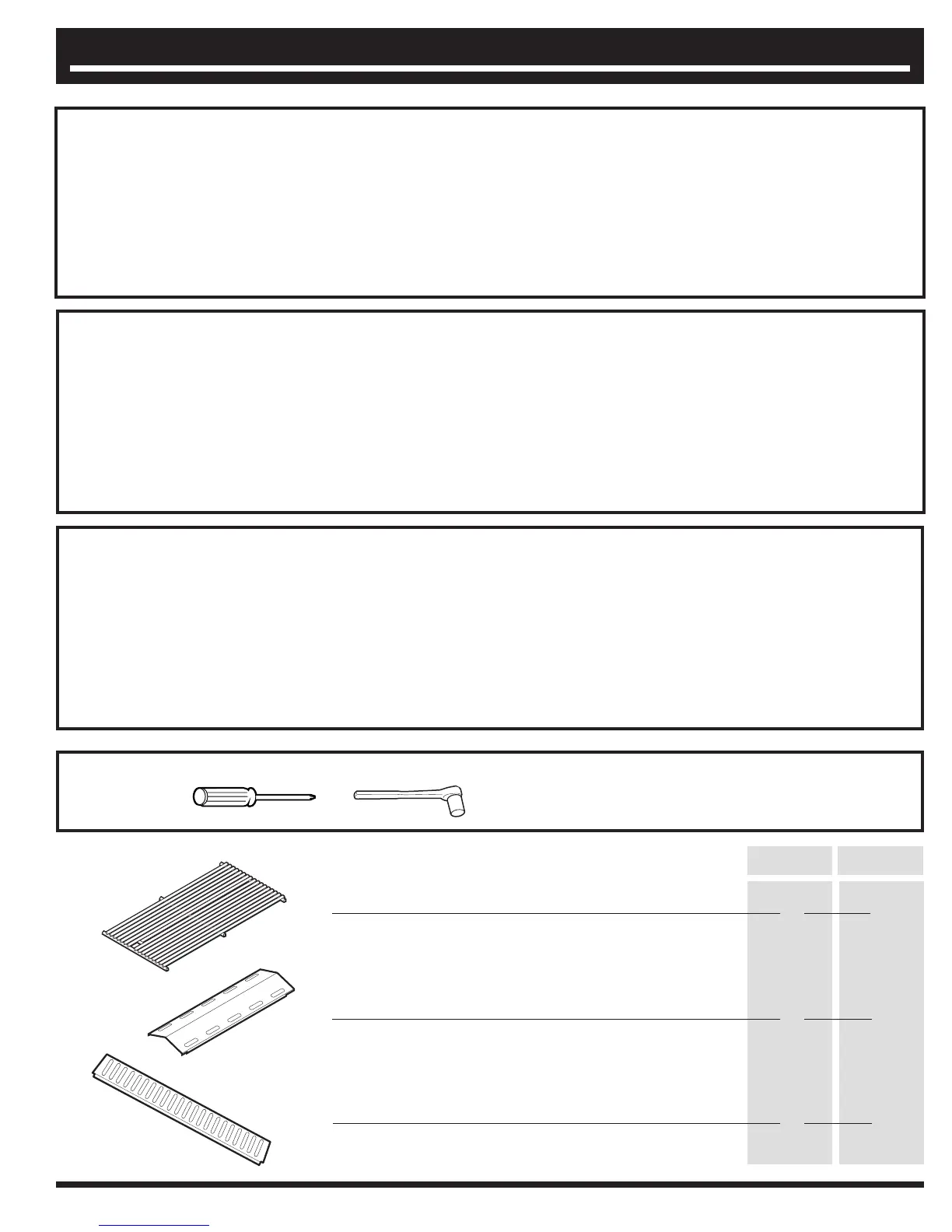 ADVERTENCIA: Debe tener mucho cuidado para asegurar que esta parrilla sea ensamblada de acuerdo a las instrucciones.