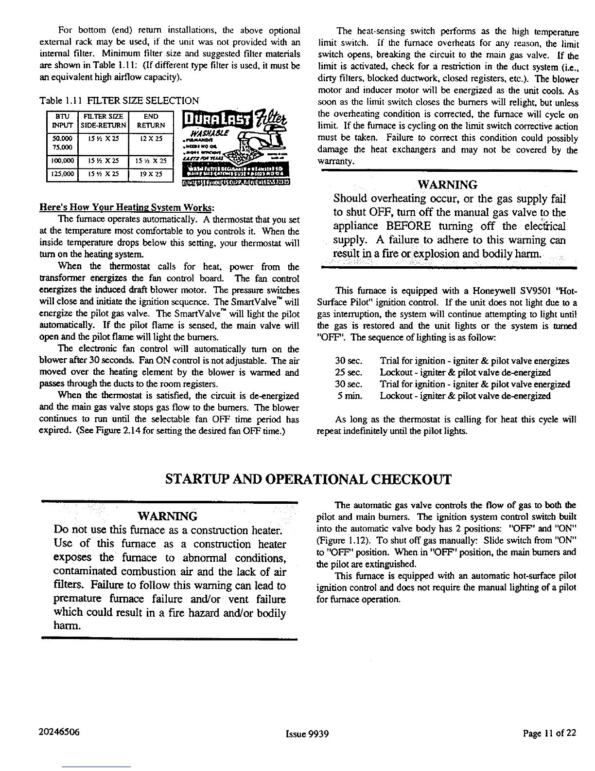 are shown in Table 1.11: (If differant type filter is used, it must be