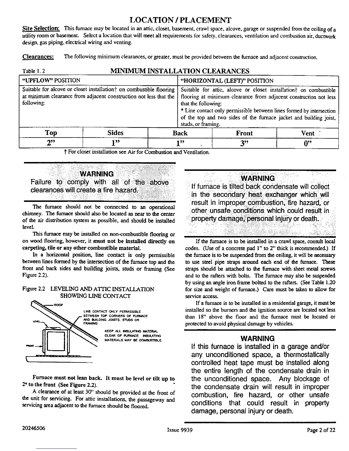 utility room orbasement. Select a location that will meet all requirements for safety, clearances, ventilation andcombustion air, ductwork
