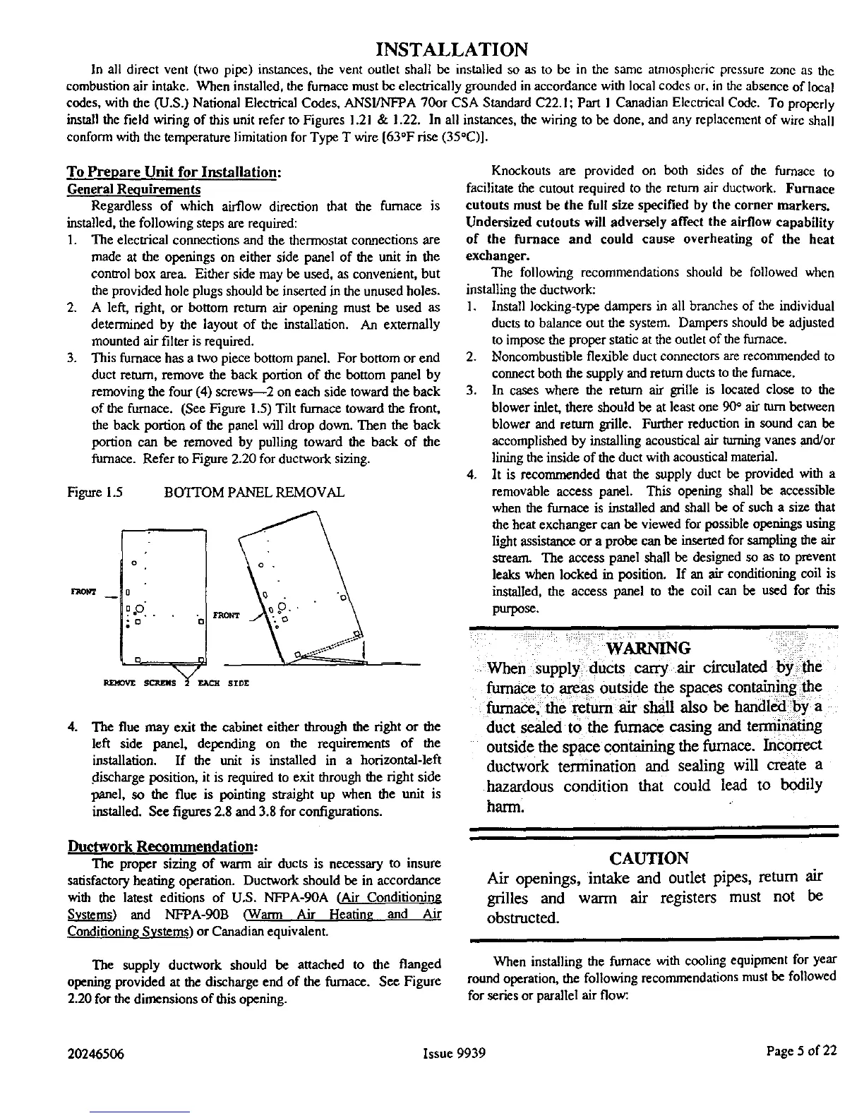 furnace. Refer to Figure 2.20 for ductwork sizing.