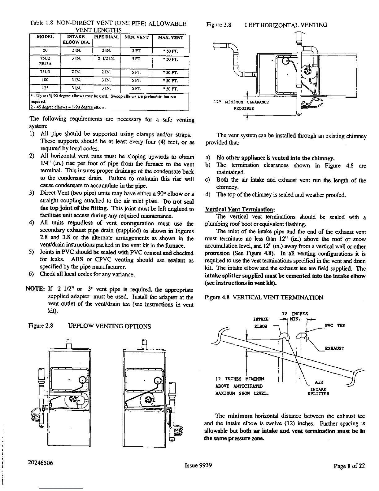 2) All horizontal vent runs must be sloping upwards to obtain