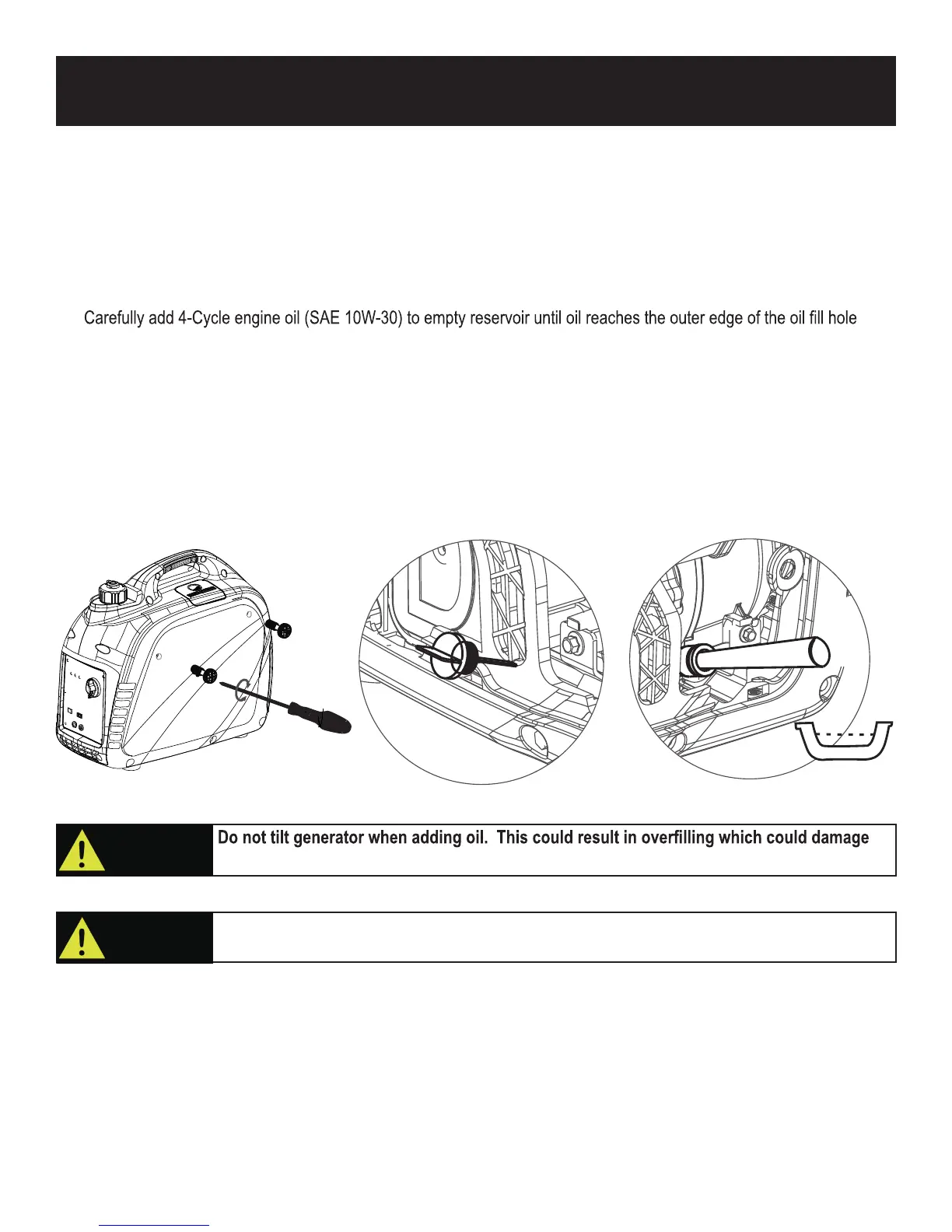 • Place an oil pan underneath the engine. Tilt generator to collect used oil.