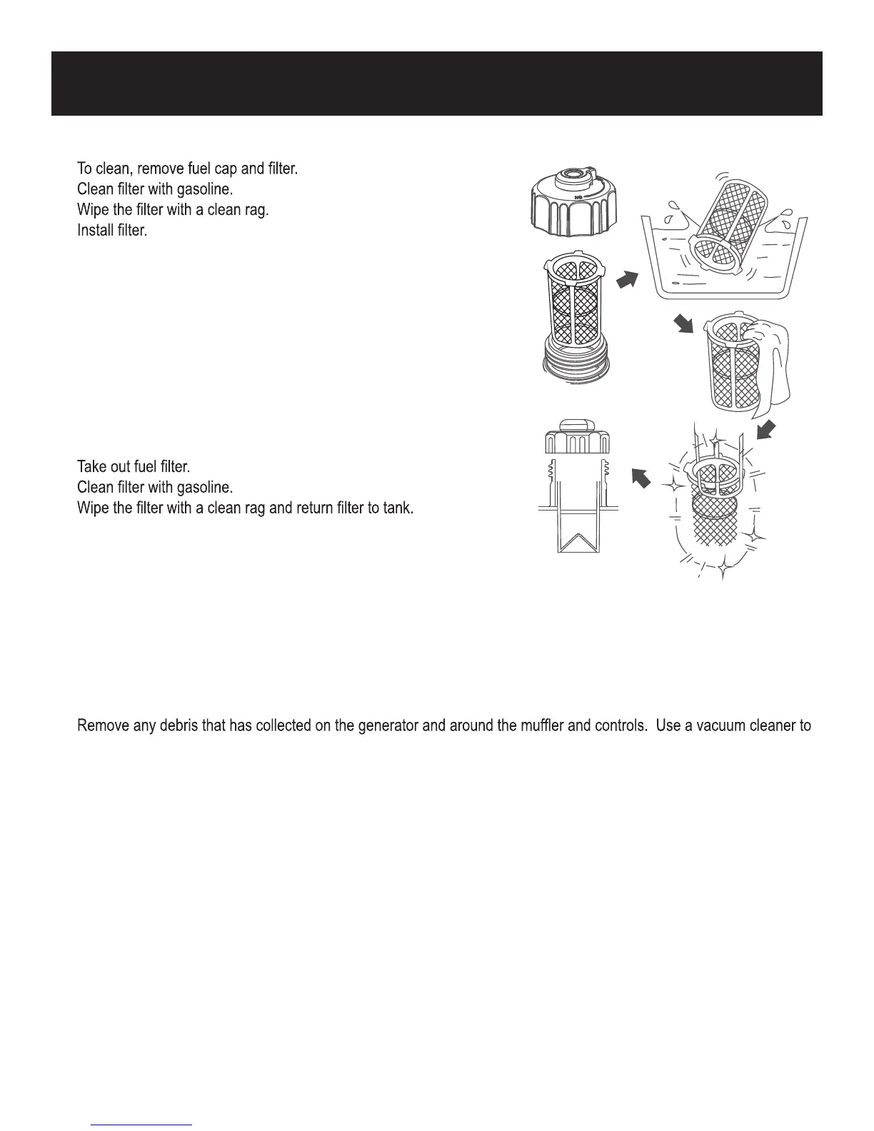 • To clean, remove screws, remove outer casing, and drain fuel.