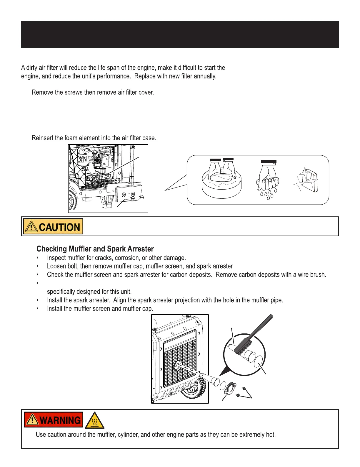 Do not run the generator without reinstalling the foam element or excessive piston and