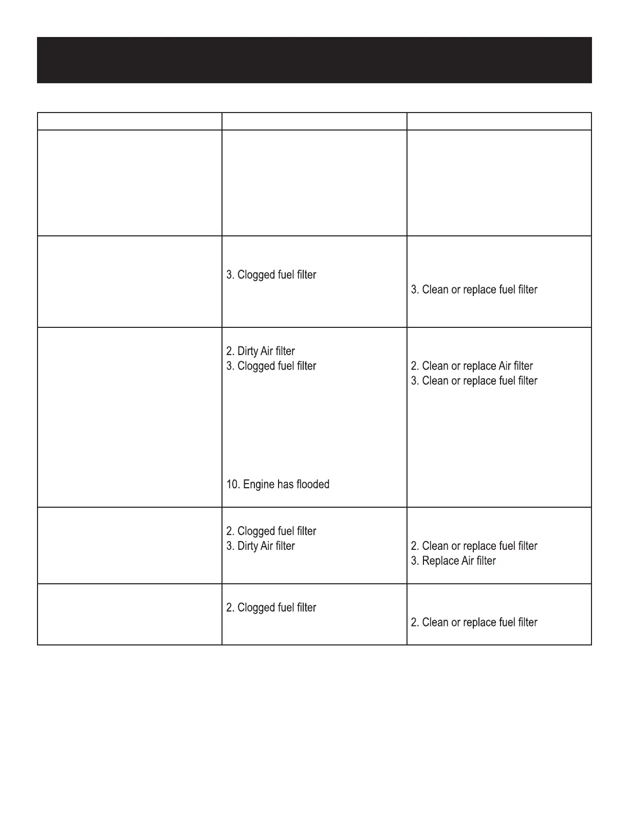 operation, or starts and runs rough.