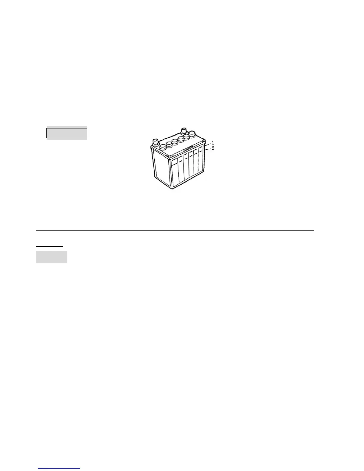 Check and make sure that the electrolyte level of each battery cell is between is upper and lower level marks