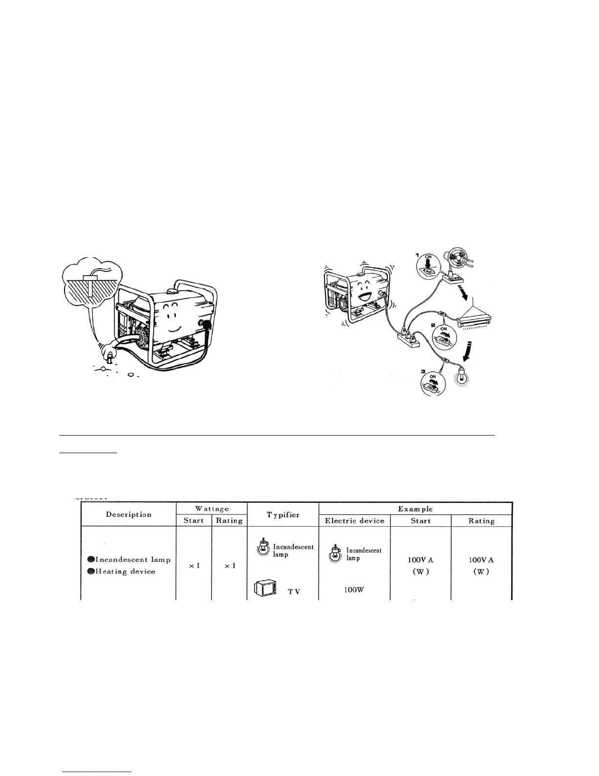 . The following table gives reference information for connecting the electric appliances to the generator.