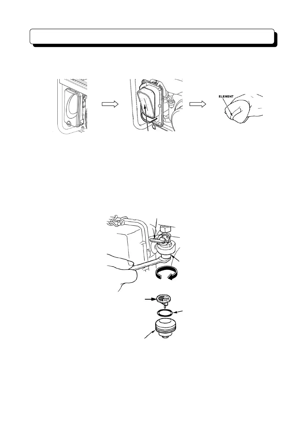 1. Close the fuel valve and remove the sediment bowl. Take out the O-type seal ring and strainer.