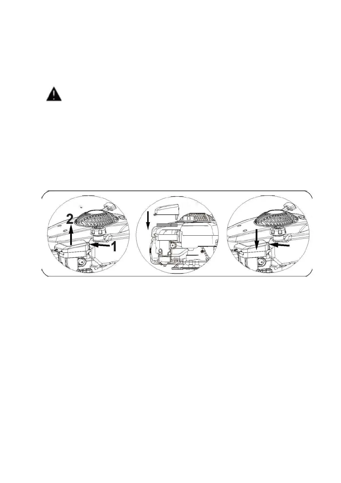 Kallista ruohonleikkuria kohti öljyn täyttöaukkoa. Pidä astia valmiina öljyn keräämistä varten ja