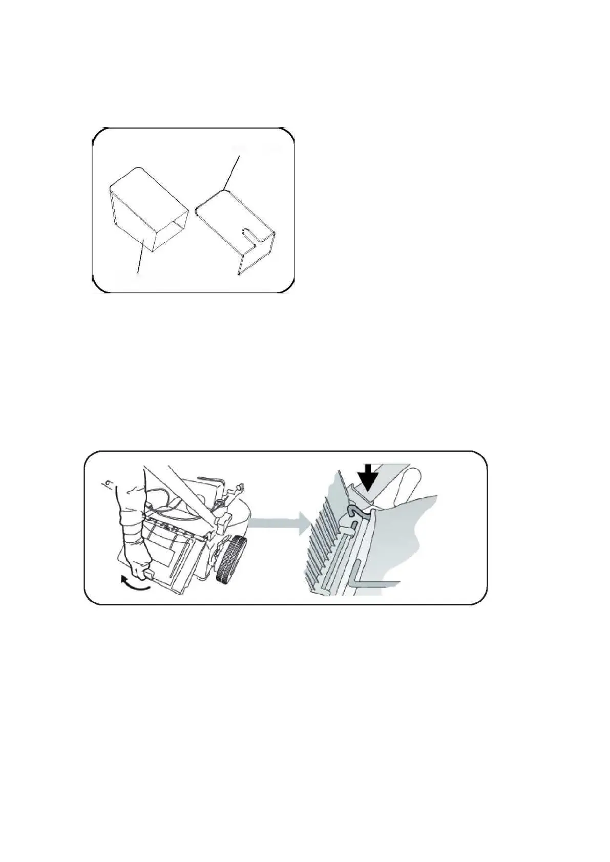 3. Lyft upp utloppsskyddet och fäst gräsuppsamlaren.