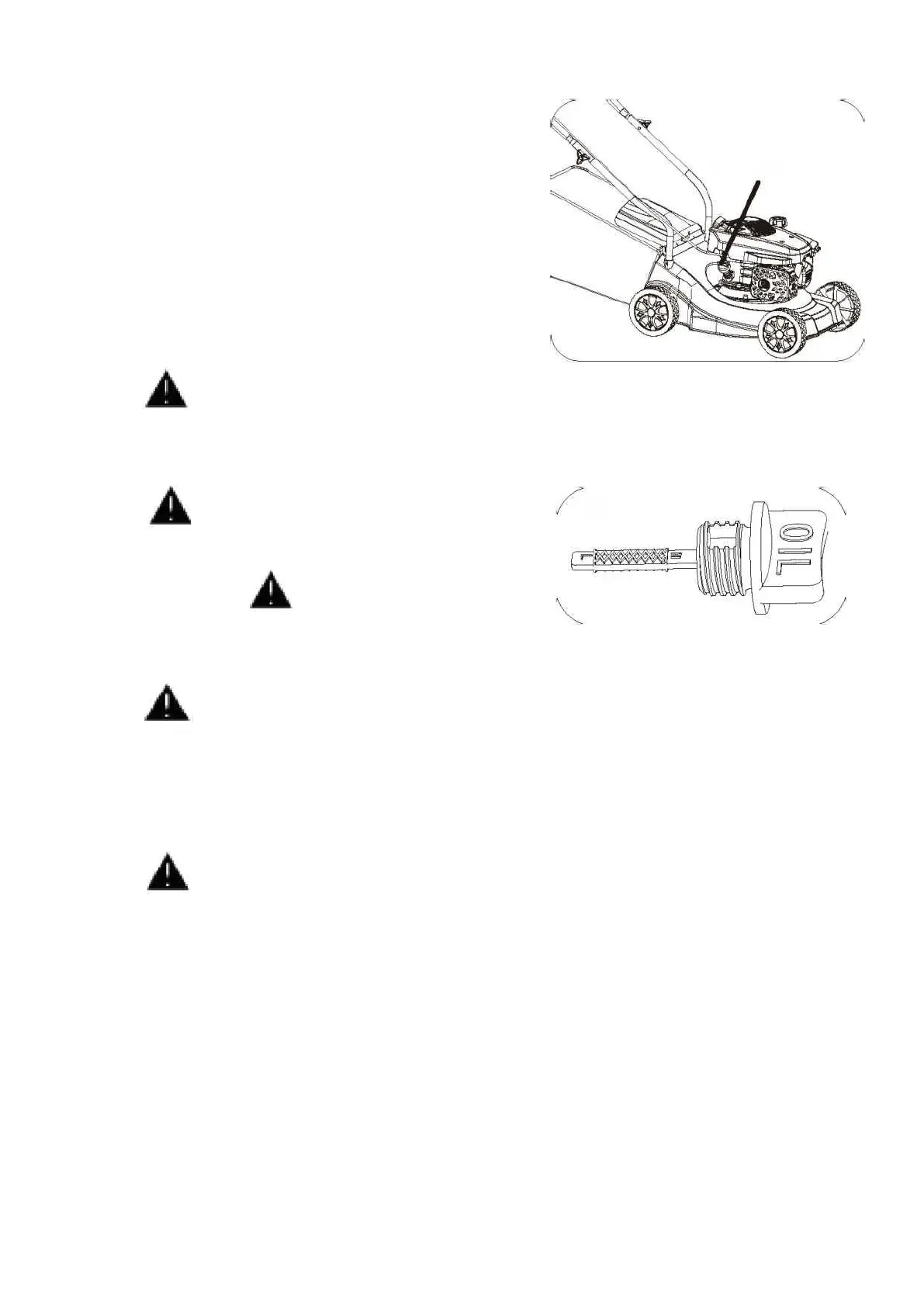 och max-markeringar. Fyll på olja till den övre gränsen med rekommenderad olja (SAE30