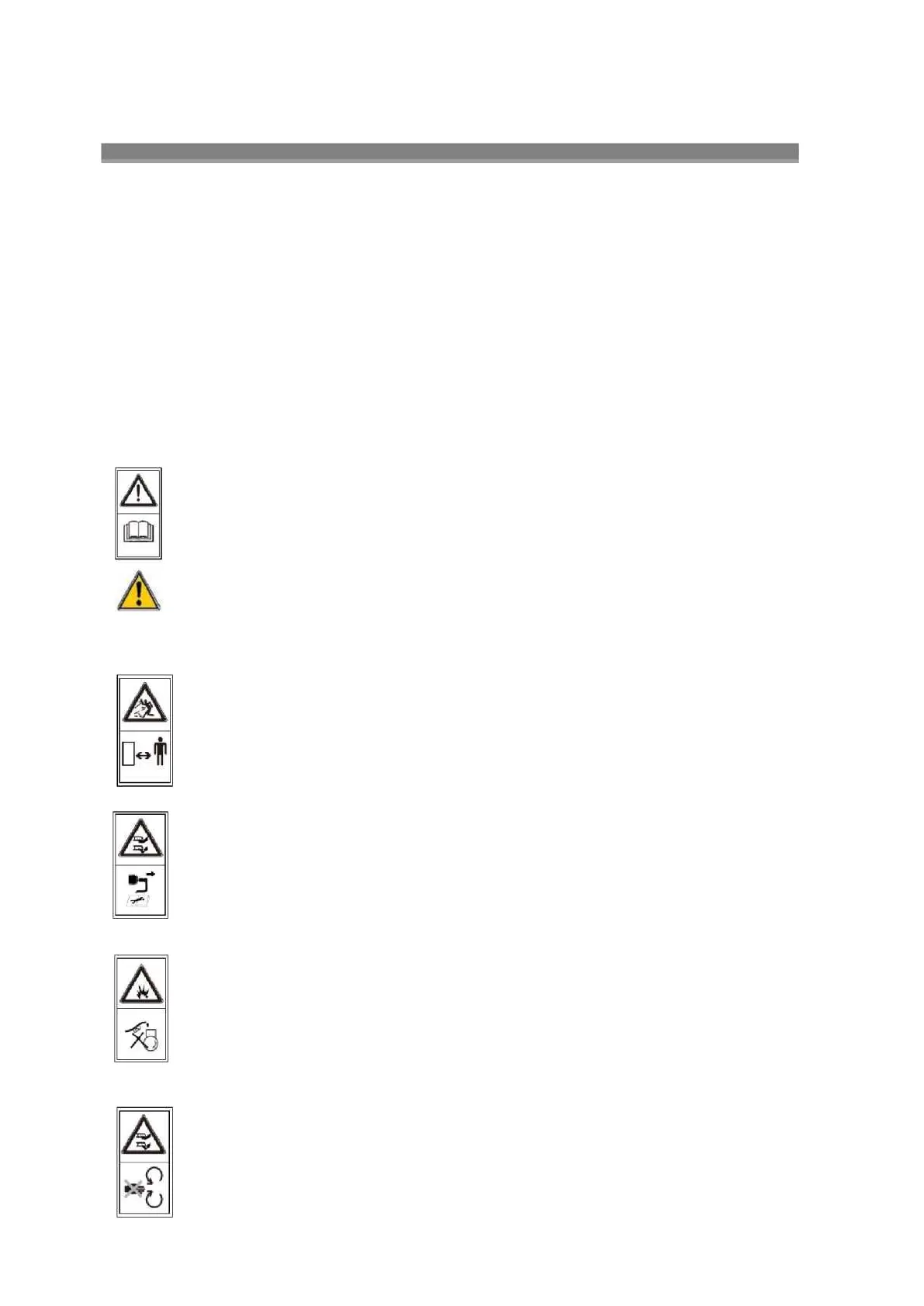 säkerhetssymbolerna och vad de avser. Varningarna förhindrar i sig inte risker, och de ersätter
