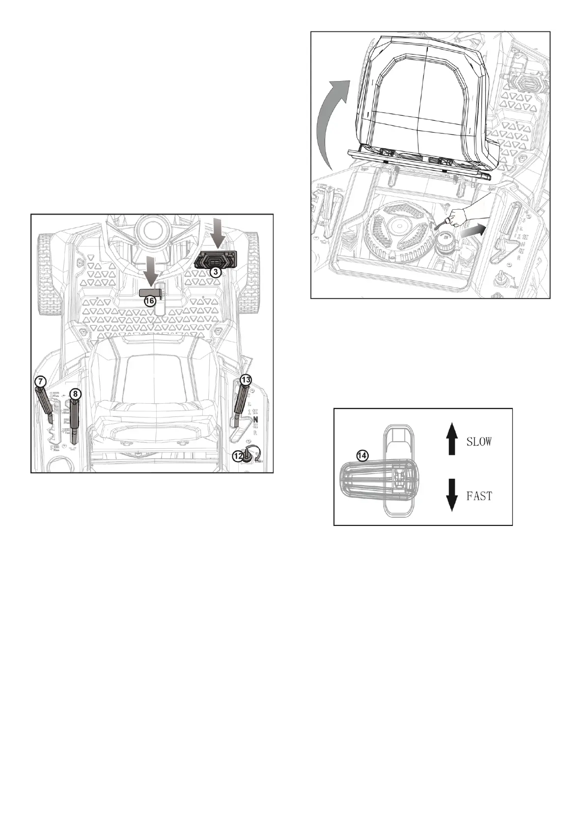 • At low speed “SLOW”, depress the brake pedal (3) comple-