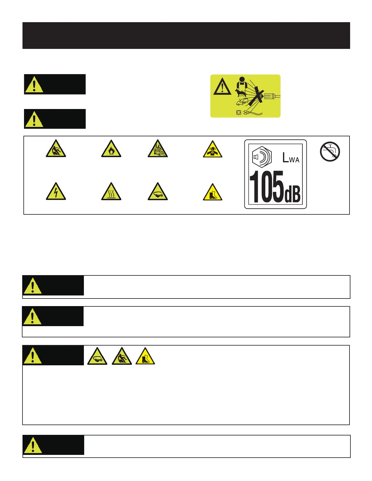 • Pressure washer can create puddles and slippery surfaces. Never wear sandals, always wear protective footwear.