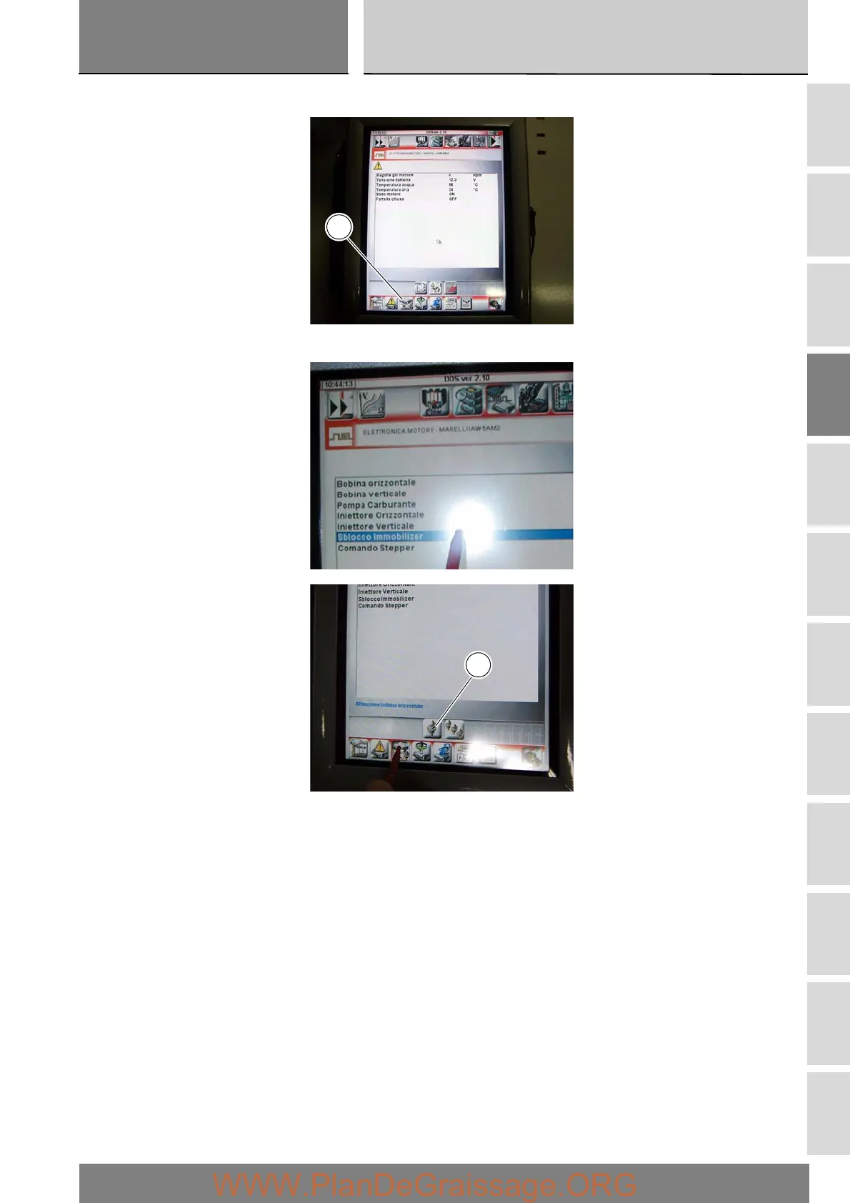 Press the “Actuators” icon (C) to display the actuators and other components connected to the ECU.