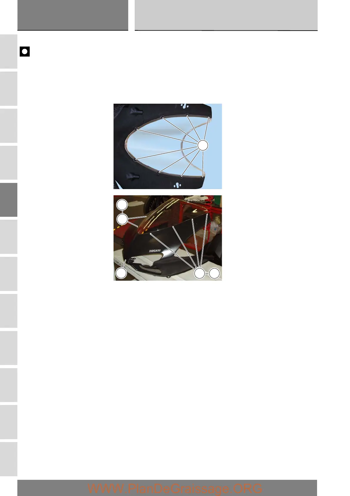On refitting the headlight shell, always refit the nylon washers (11) in correspondence with the retaining bolts to avoid damaging