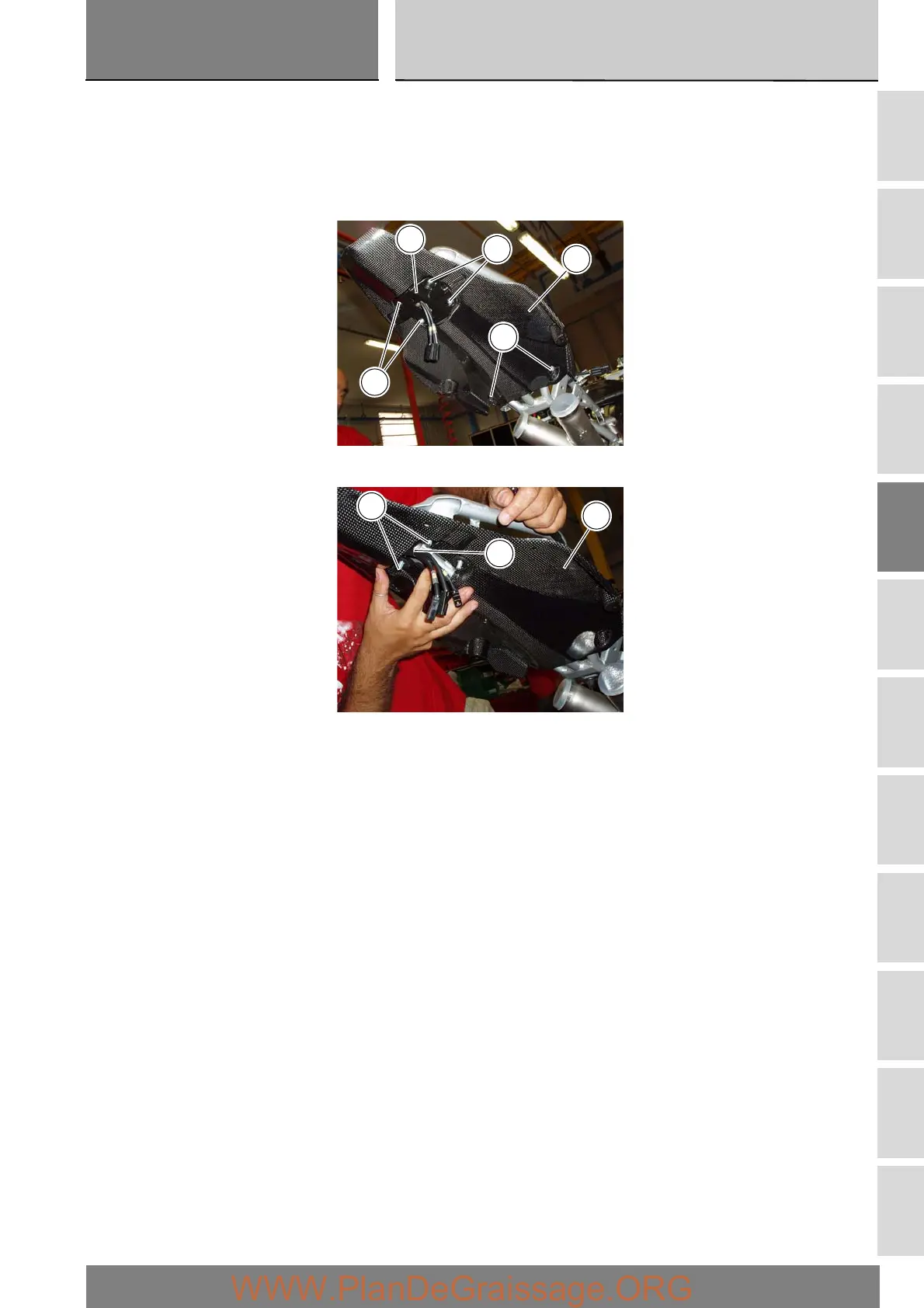 Remove the exhaust silencers and the relative clamps as indicated in Sect. L 8.