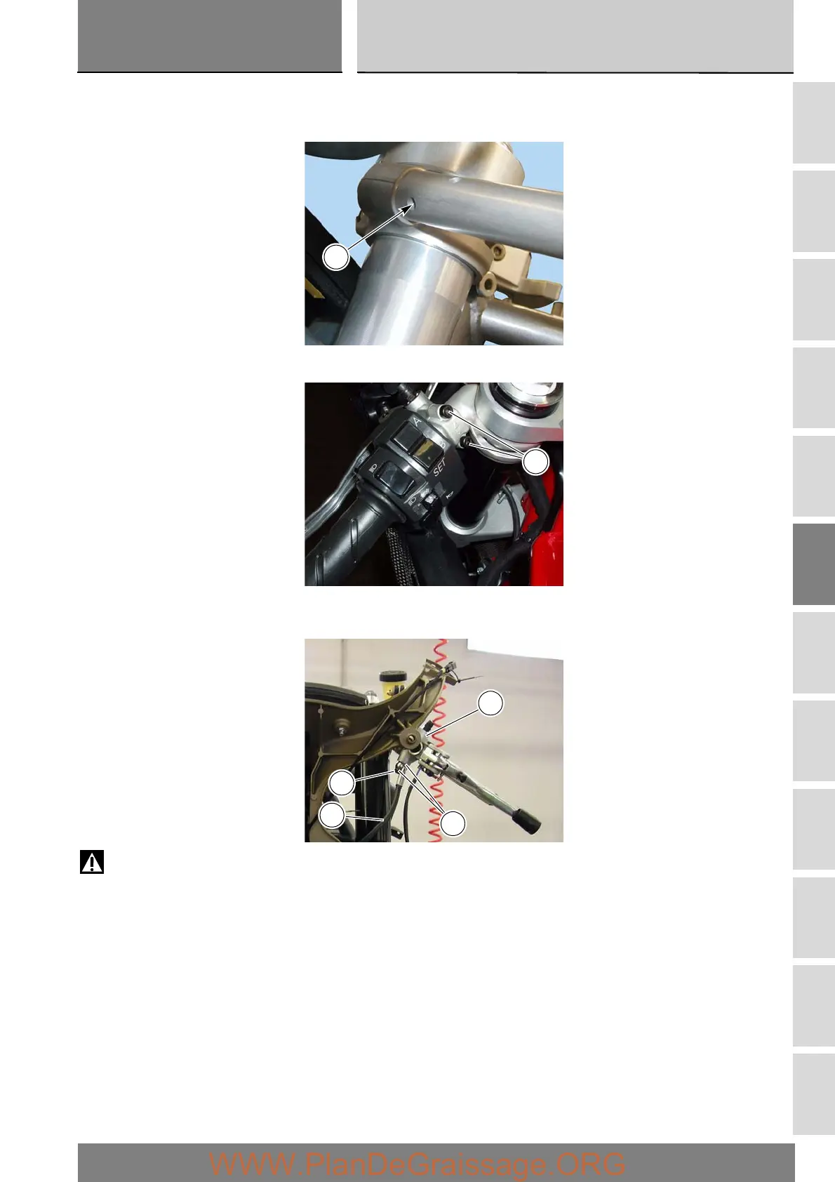 Fit the clutch master cylinder (1), locating the pin on the cylinder body in the hole (A) in the handlebar.