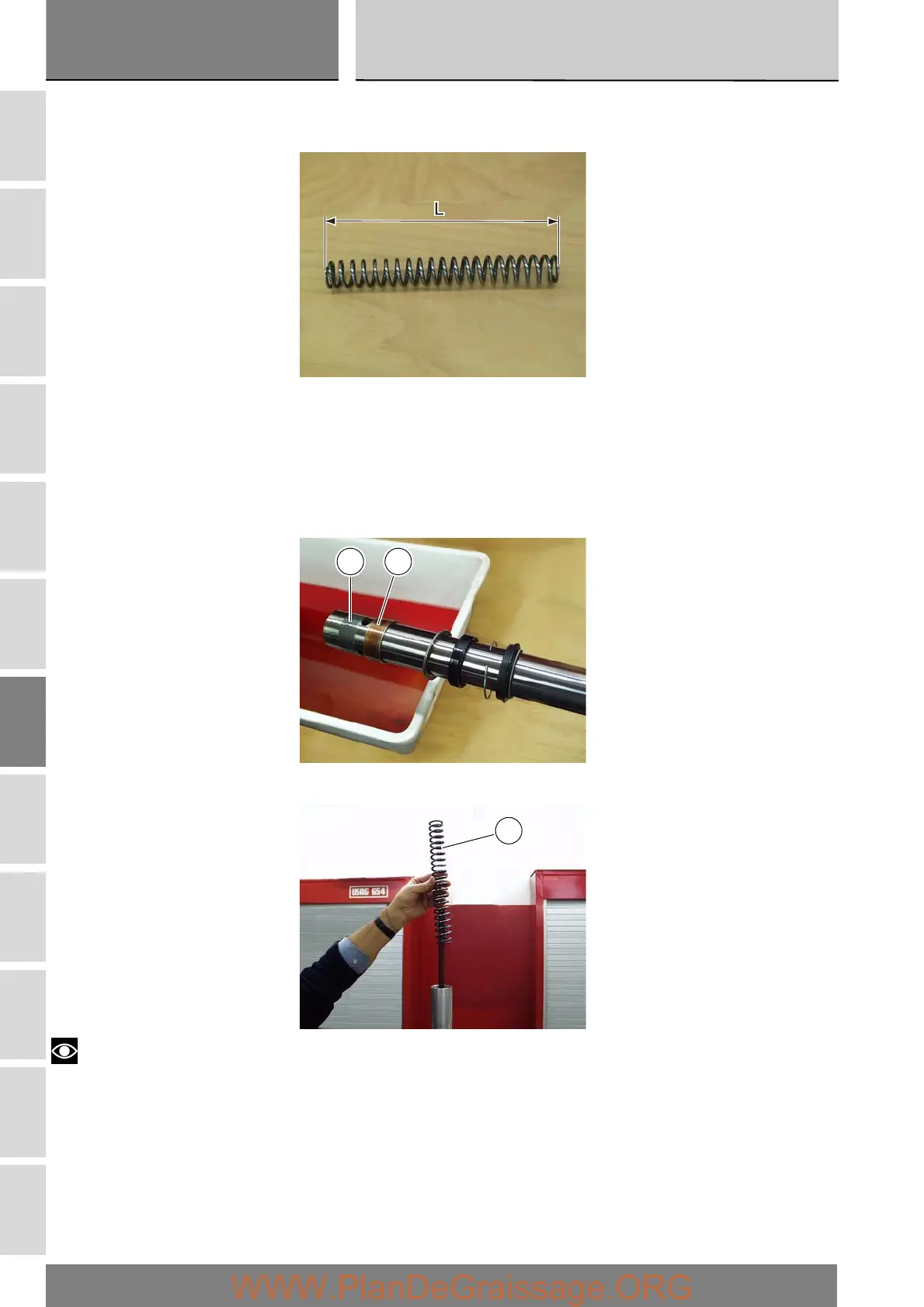 Install the spring (10), ensuring that the end with tighter coils is towards the bottom of the fork.