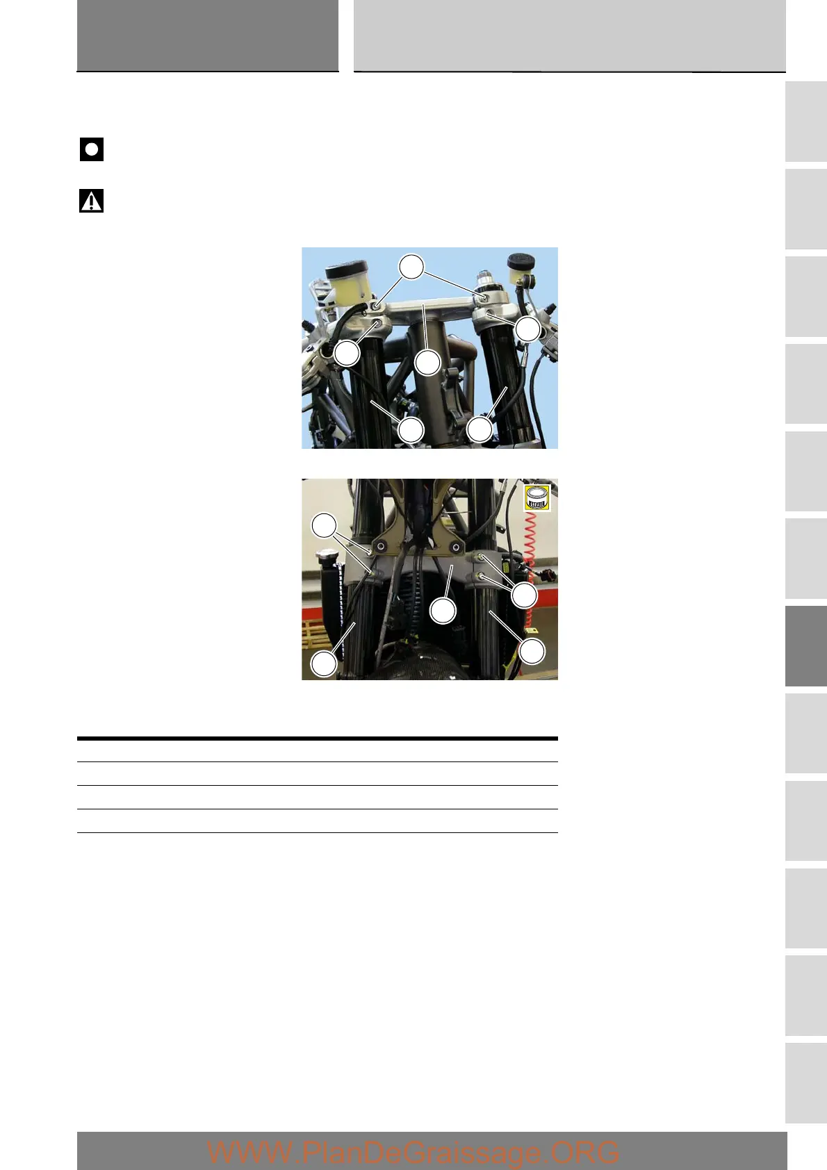 Do not use the motorcycle without the front mudguard fitted to avoid the risk of the brake pipes fouling the wheel on braking.