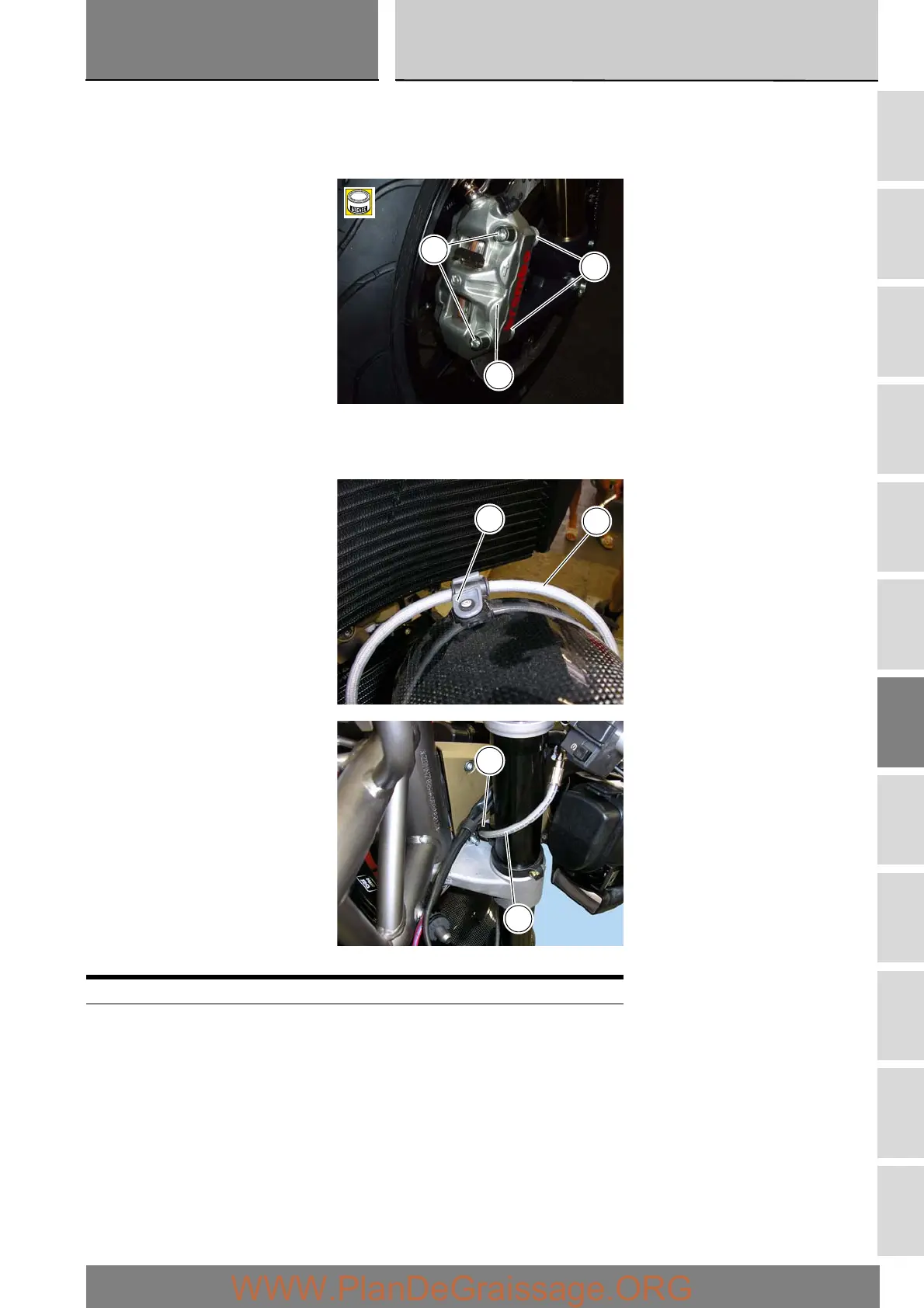 Insert the front brake hose (3) in the clip (20) located on the front mudguard and in the clamp on the bottom yoke (4).
