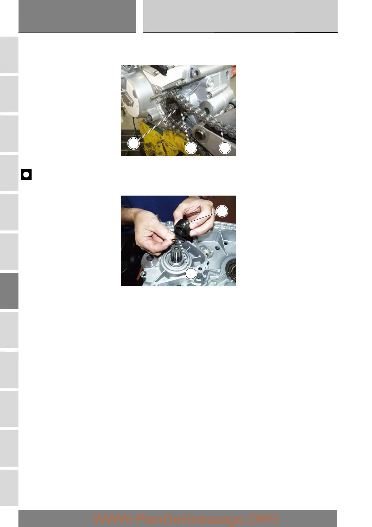 Remove the front sprocket (3) with the chain (4) from the gearbox output shaft.