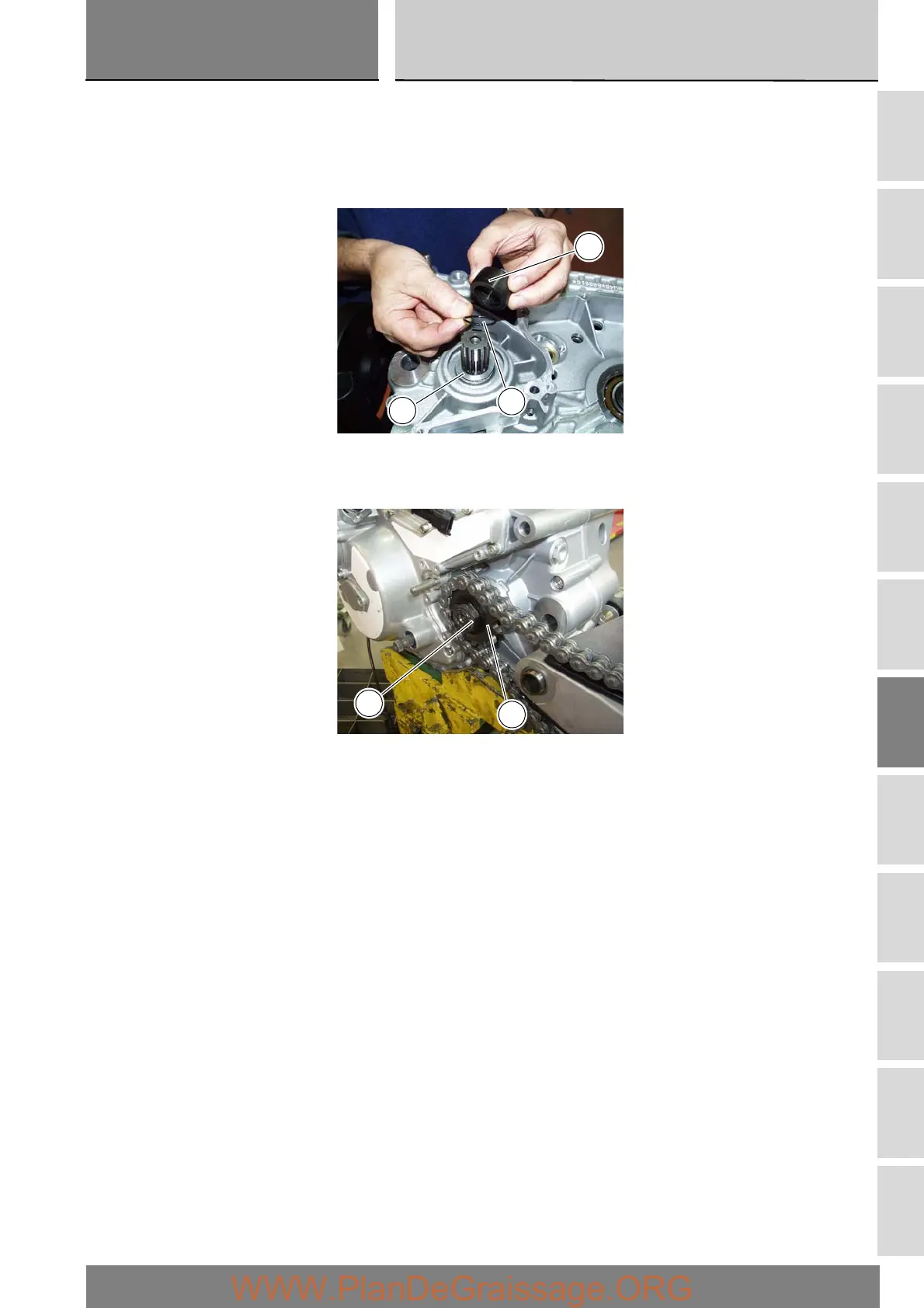 Check that the splines of the gearbox output shaft and the sprocket are in perfect condition.