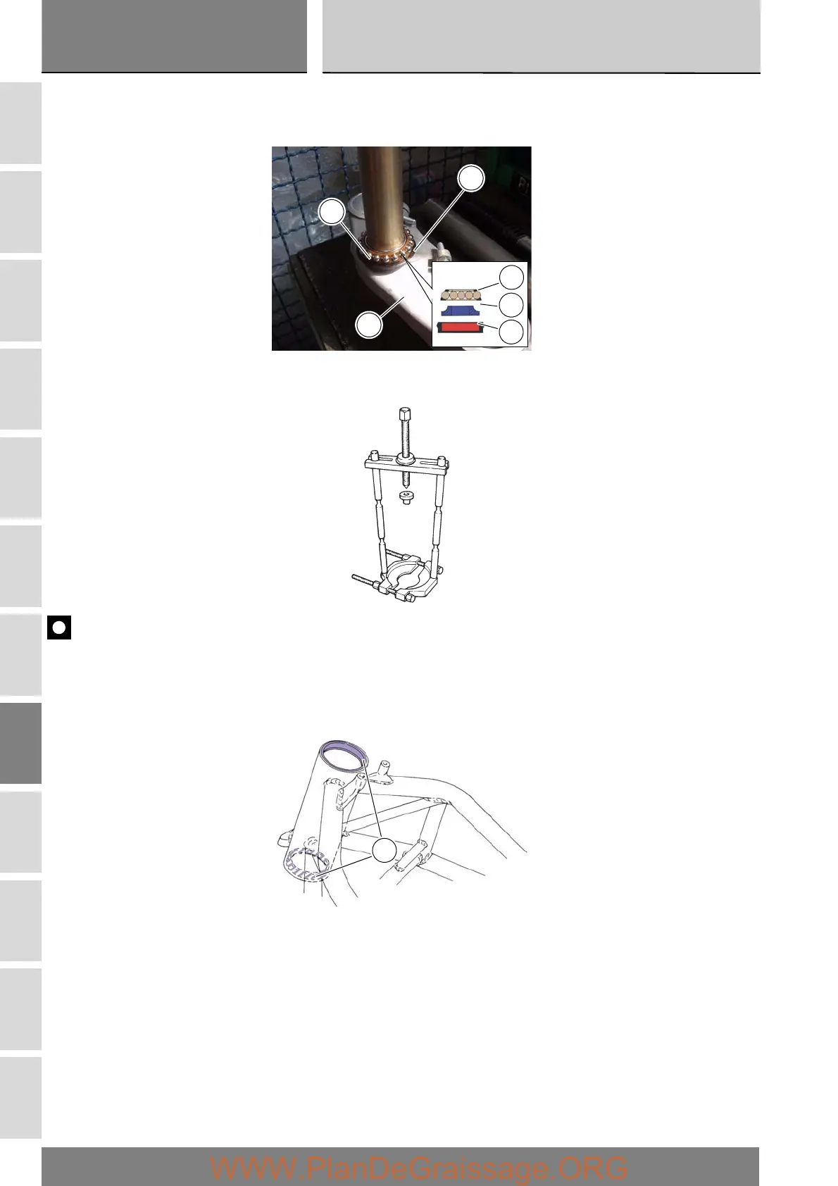 The inner race (A) of the lower bearing (3) and the relative oil seal (2) will remain on the steering stem.