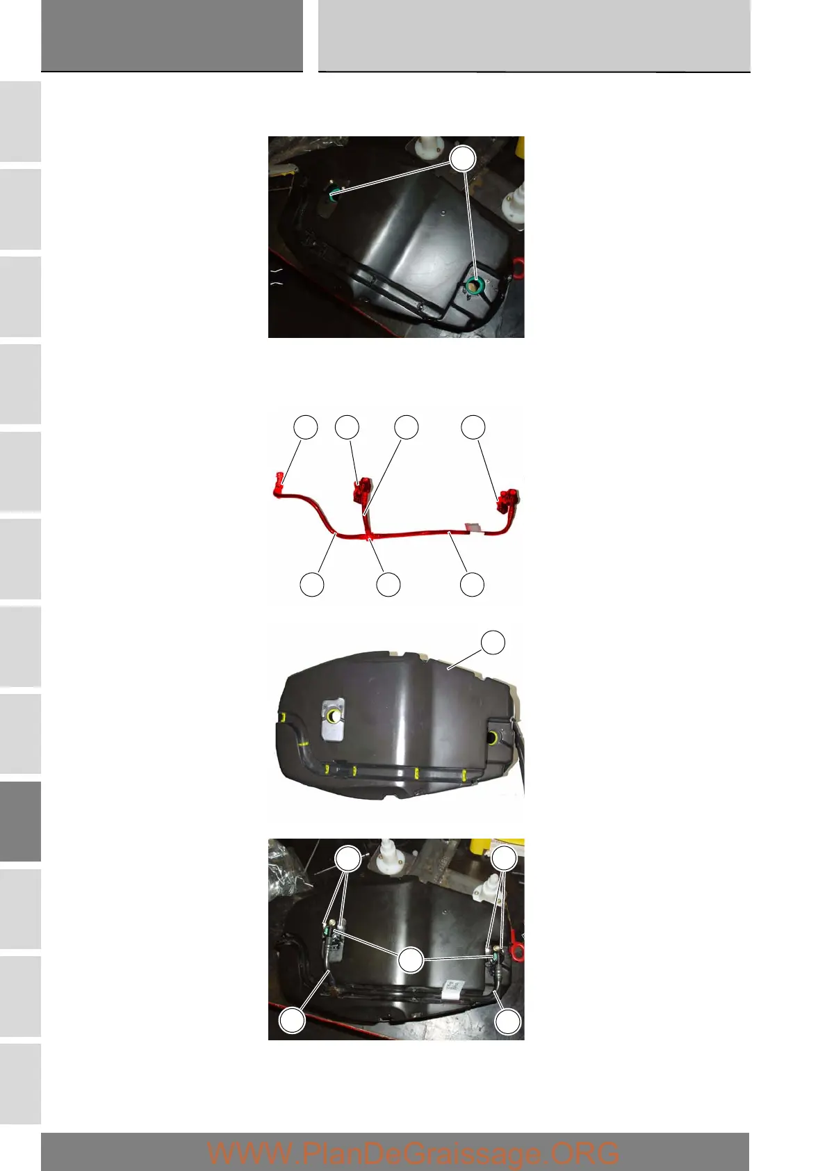Position the hoses and unions (5), (6), (14), (15) and (16) with the fuel injectors (13) on the airbox (20) in the corresponding yellow