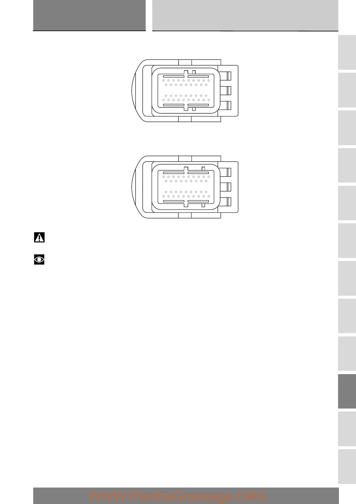 There are two kinds of ECU connector, one with a grey terminal block (Body), and one with a black terminal block (Engine).
