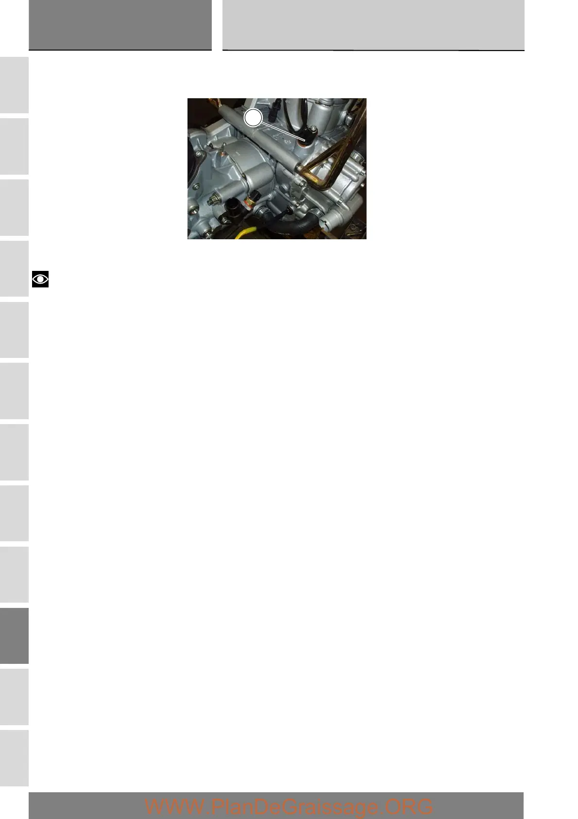 This sensor (1) is of the inductive type: it faces the timing gear and is capable of reading the 46 teeth and the 2-tooth gap.