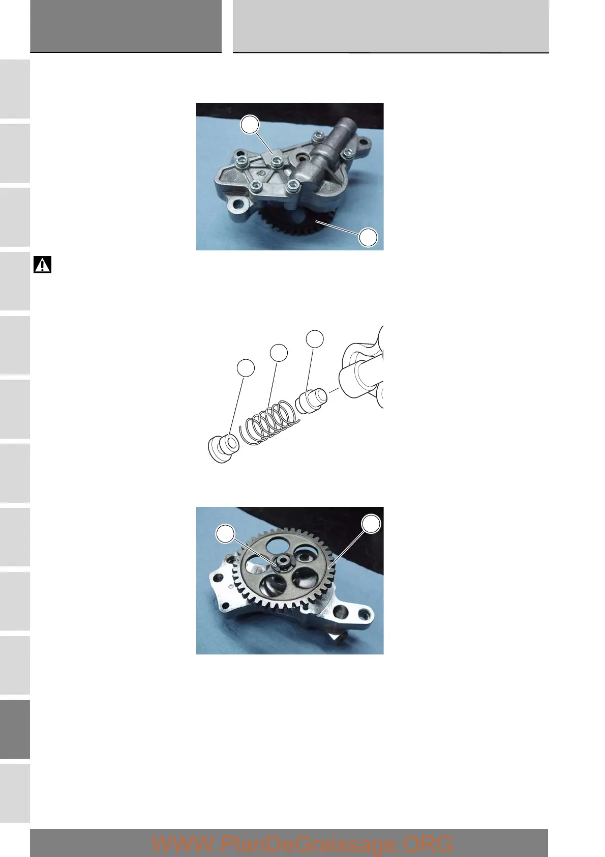 Hold the oil pump (1) in a vice taking care not to damage the drive gear (12).