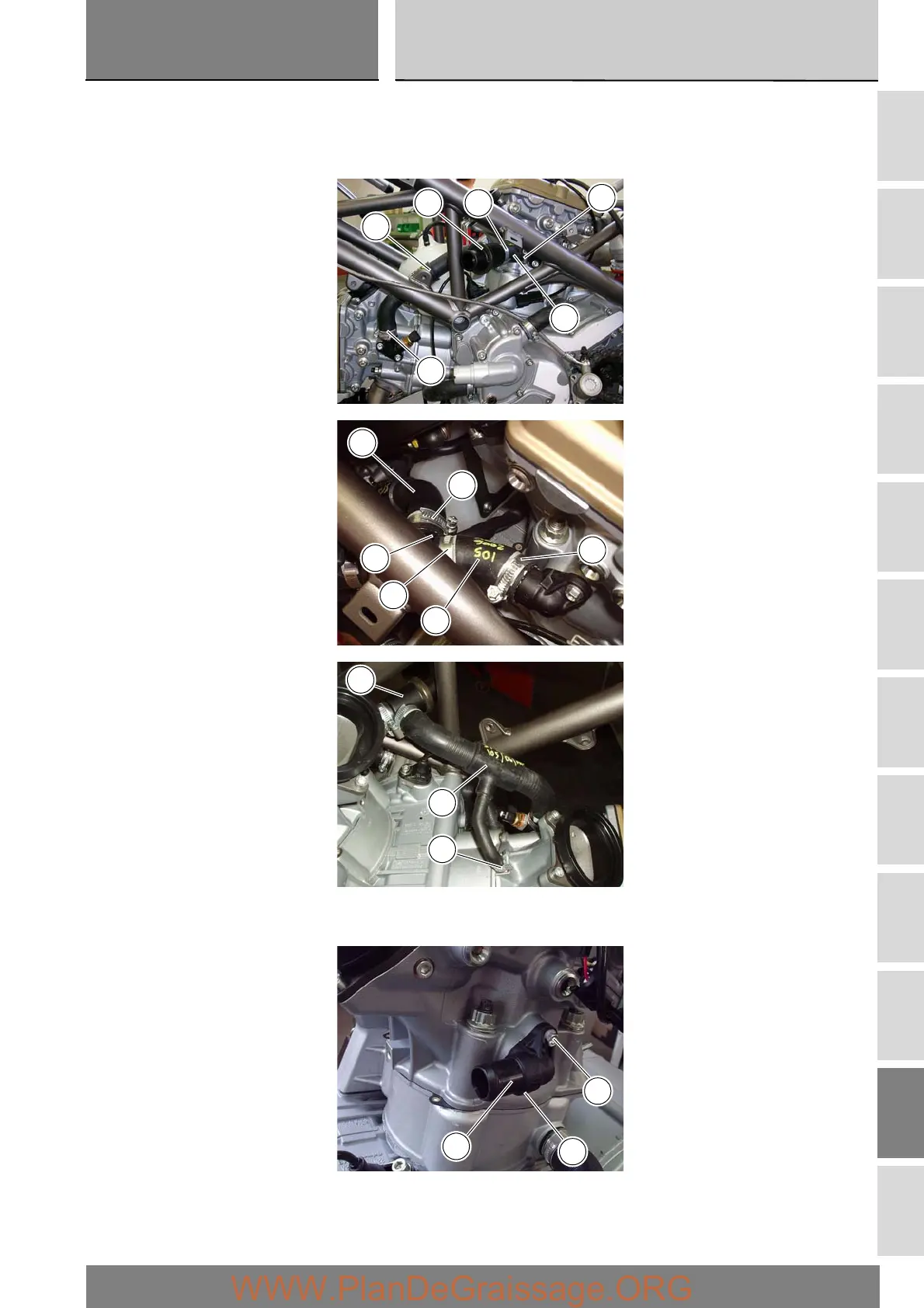 Loosen the clamps (14) to dismantle the thermostat assembly (16) – thermostat/cylinder head hose (18) - thermostat/cylinder
