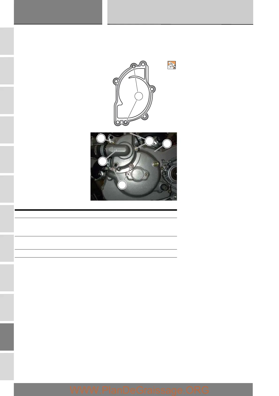 Apply a bead of liquid gasket to the water pump cover (12) as shown in the figure.