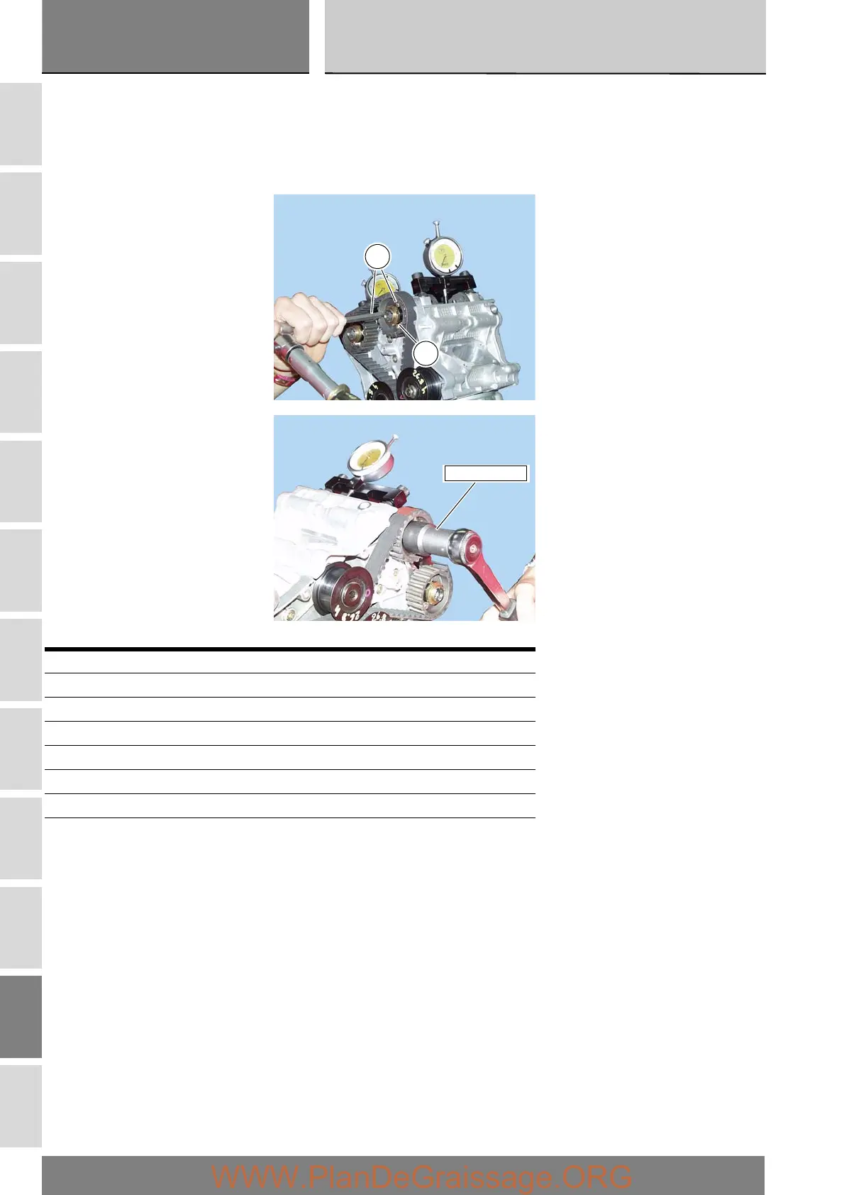 If the values obtained are outside the specified ranges (Sect. C 1.1), loosen the timing pulley bolts (M) and correct the value by